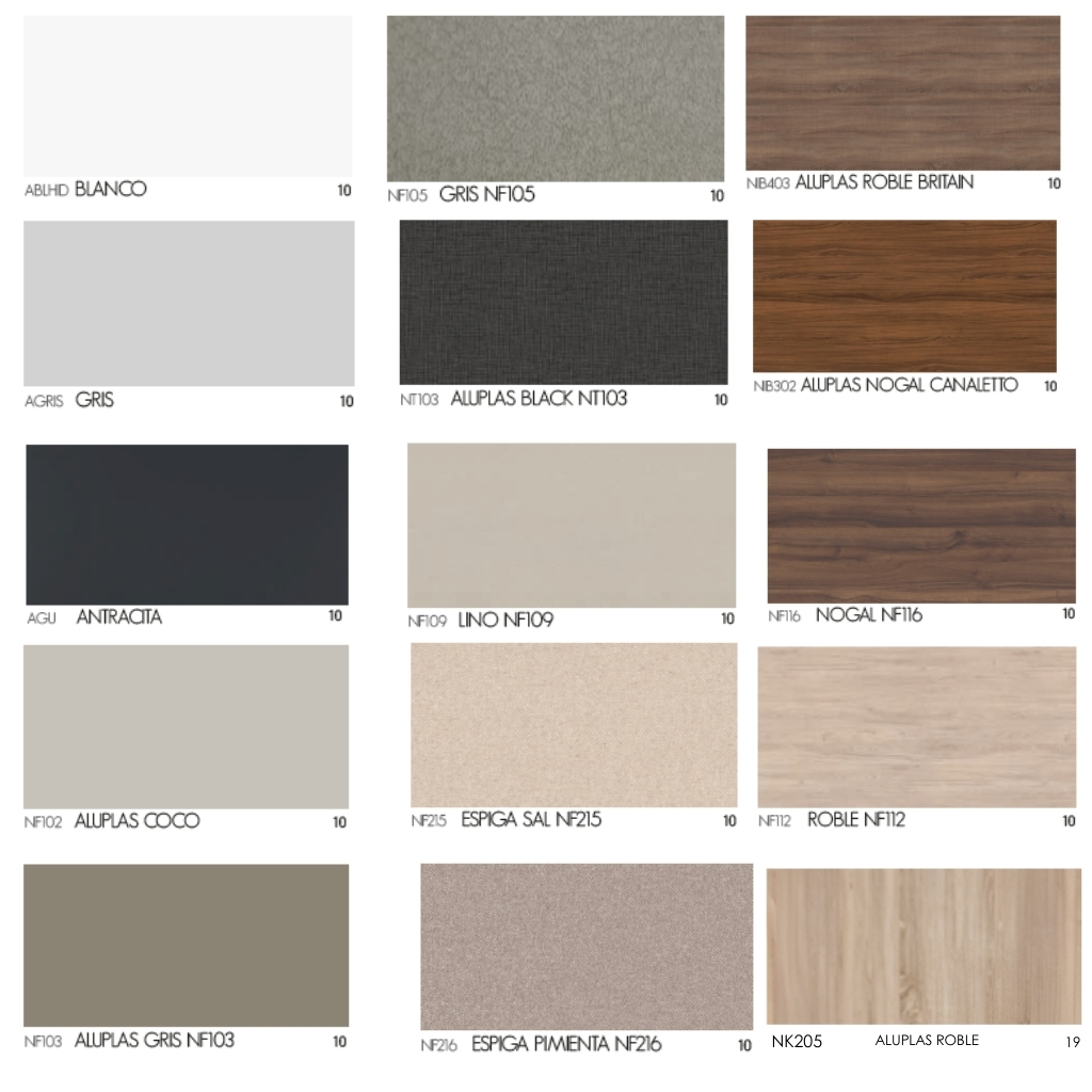 AvanTech presenta una gran flexibilidad de diseños en lo referente a acabados, formas y materiales, de tal manera que resulta fácil materializar las ideas de diseño de muebles. Contando con 3 colores, 5 alturas y 8  profundidades.