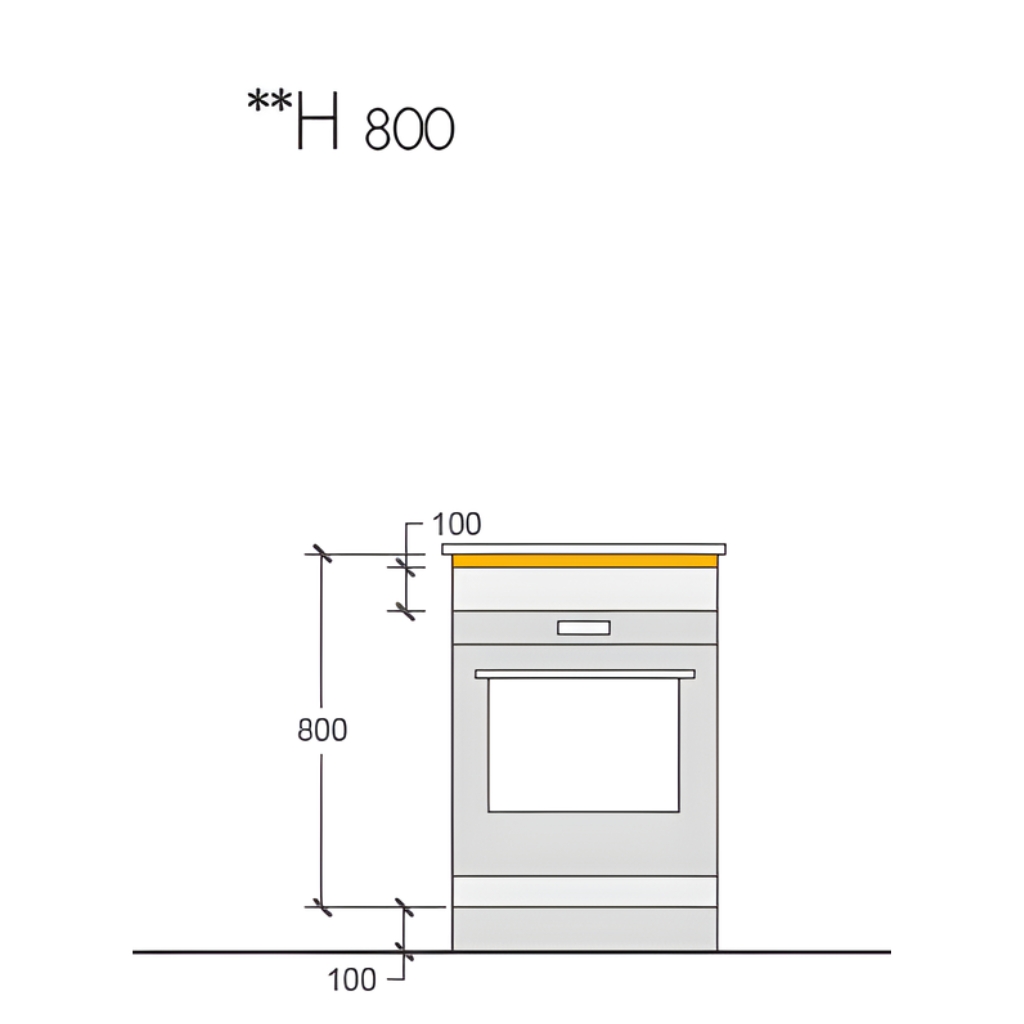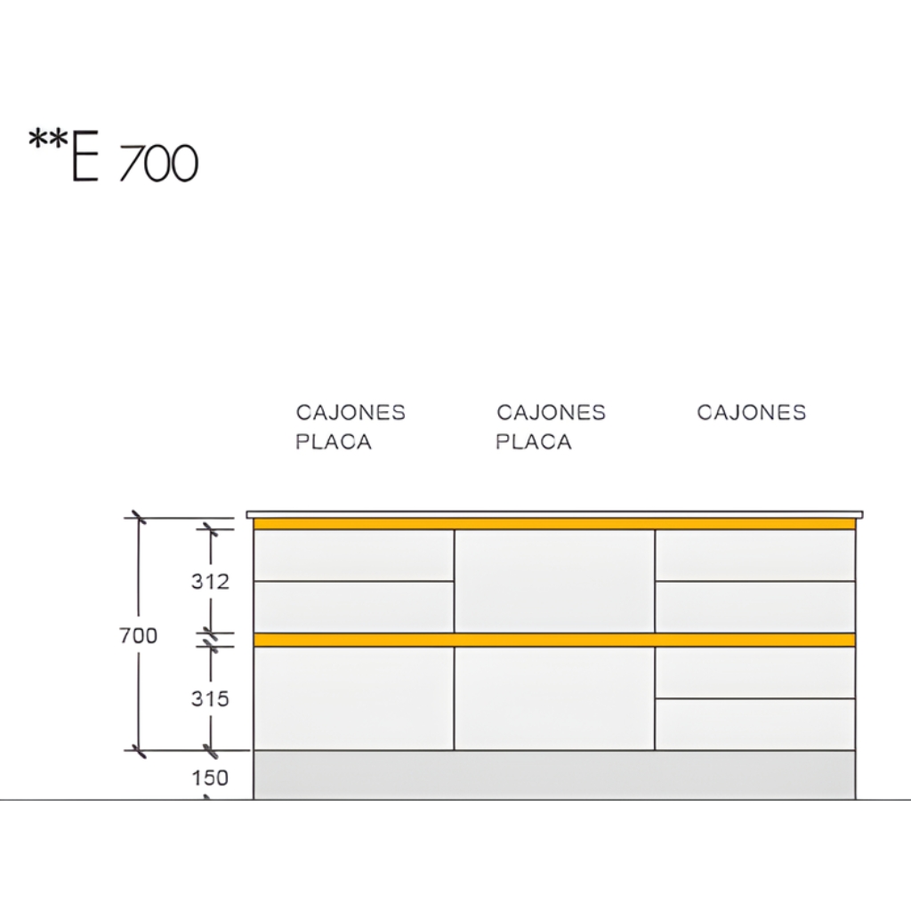 Las alturas son de 700-760-800-850 (mm). La medida de la rejilla de ventilación en electrodomésticos es de 60mm.