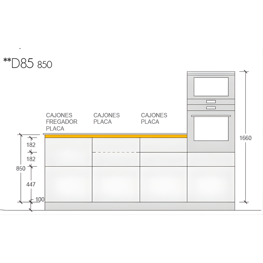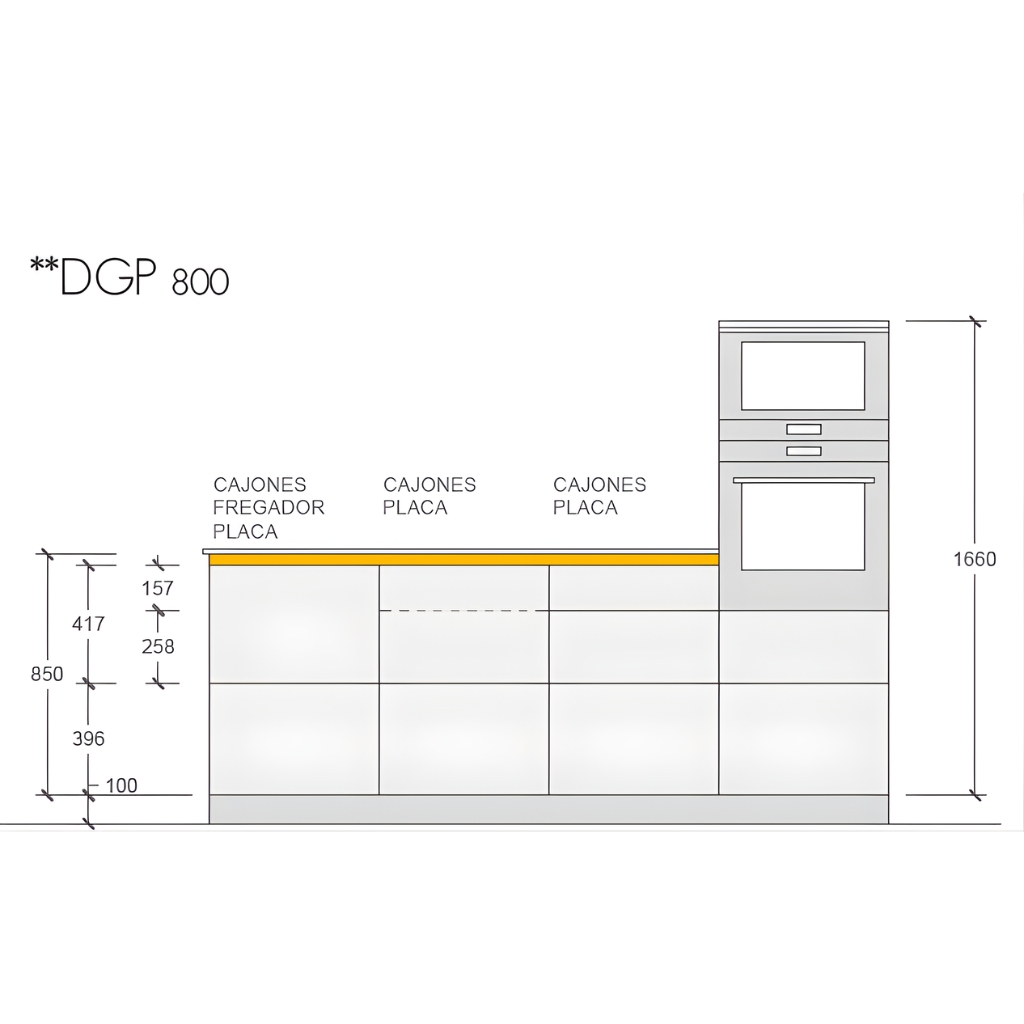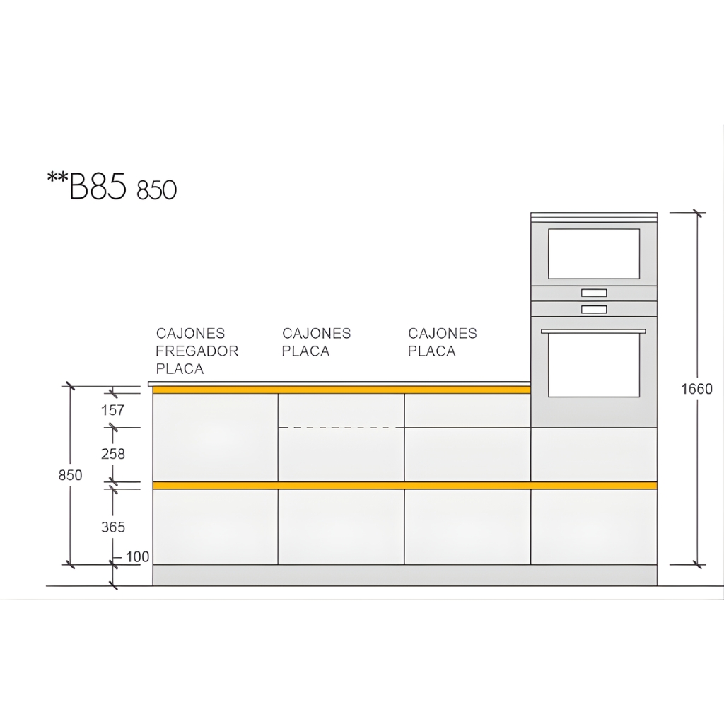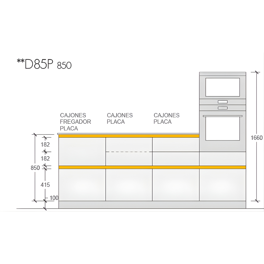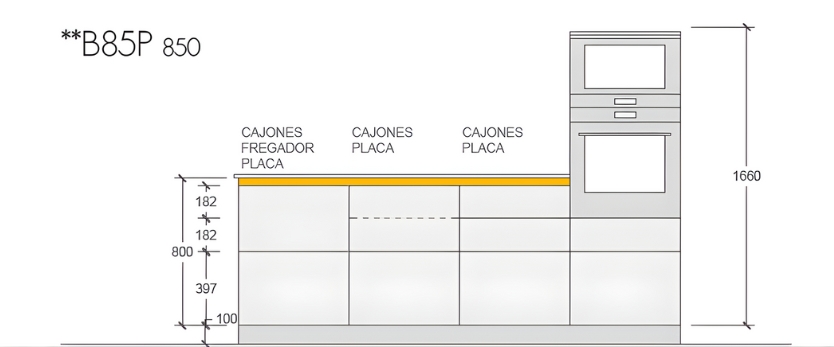 Hay que tener en cuenta que también disponen de los esquemas en nuestro programa para todas las combinaciones de columnas con horno y microondas, estos muebles están diseñados para que la línea de entre puertas y cajones siempre sea continua y el diseño sea equilibrado.