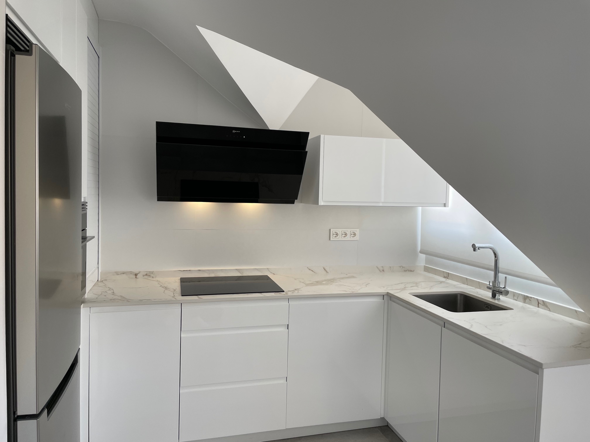 En esta cocina compacta, cada rincón ha sido cuidadosamente diseñado para sacar el máximo partido al espacio disponible. Soluciones inteligentes de almacenamiento y distribución permiten crear un ambiente funcional y ordenado sin renunciar al estilo ni a la comodidad.