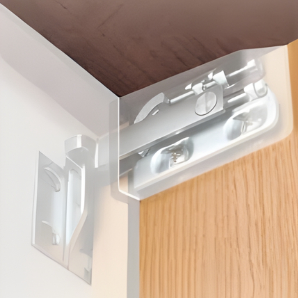 Colgador de alta resistencia 65kg/unidad según la norma DIN 68840 certificado por LGA (equivalente a 260 kg de carga final por juego) Permite tres regulaciones independientes fácilmente accesibles desde el frente.