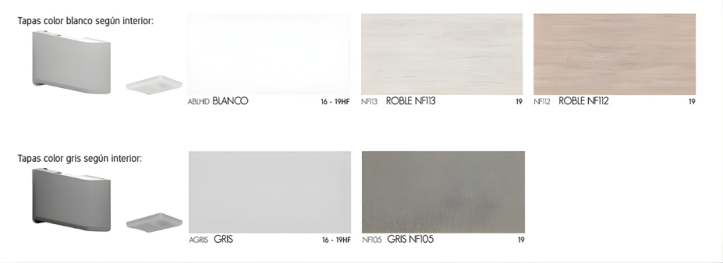 Para cualquier cambio en las tapas de color, consultar con fábrica.